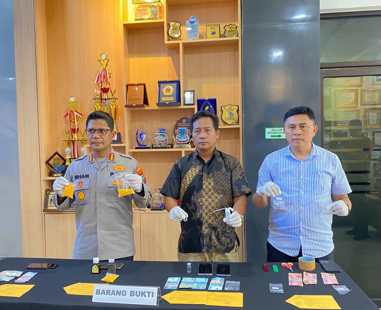 • 3 tersangka kasus narkotika jenis sabu, masing-masing berinisial BMR (21), DPR (23), dan DT (28).