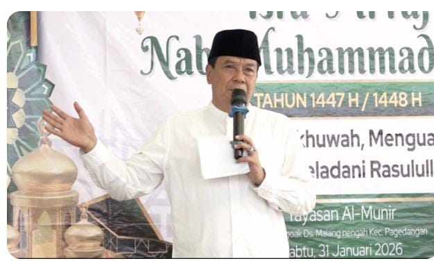 Tangerang, Lintasantikorupsiindonesia.com -Bupati Tangerang, Moch. Maesyal Rasyid menghadiri pengajian rutin yang dirangkaikan dengan peringatan Isra Mi’raj Nabi Muhammad SAW Majelis Taklim Al-Munir yang digelar di Gedung Majelis Taklim Al-Munir Kec. Pagedangan, Sabtu (31/01/26)