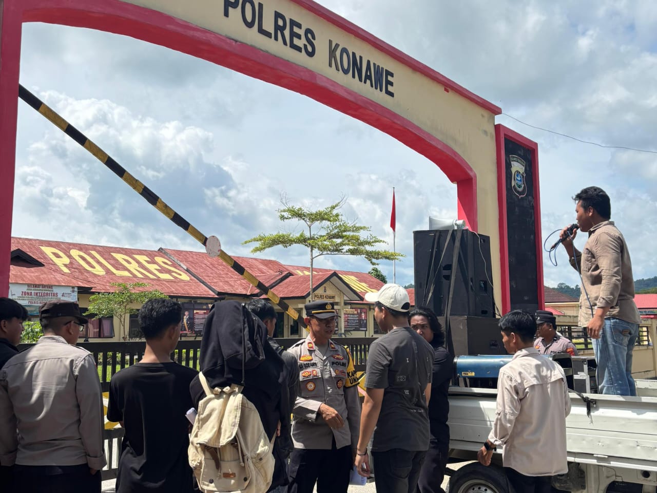 Konawe, Lintasantikorupsiindonesia.com: Gerakan Aktivis Mahasiswa Sulawesi Tenggara (GAM Sultra) menggelar aksi unjuk rasa di Polres Konawe dan Kejaksaan Negeri Konawe untuk mendesak aparat penegak hukum segera mengusut dugaan aktivitas tambang Galian C ilegal di Kecamatan Meluhu serta dugaan penggunaan material ilegal tersebut pada proyek peningkatan dan rehabilitasi jalan yang bersumber dari APBD Kabupaten Konawe Tahun Anggaran 2025.