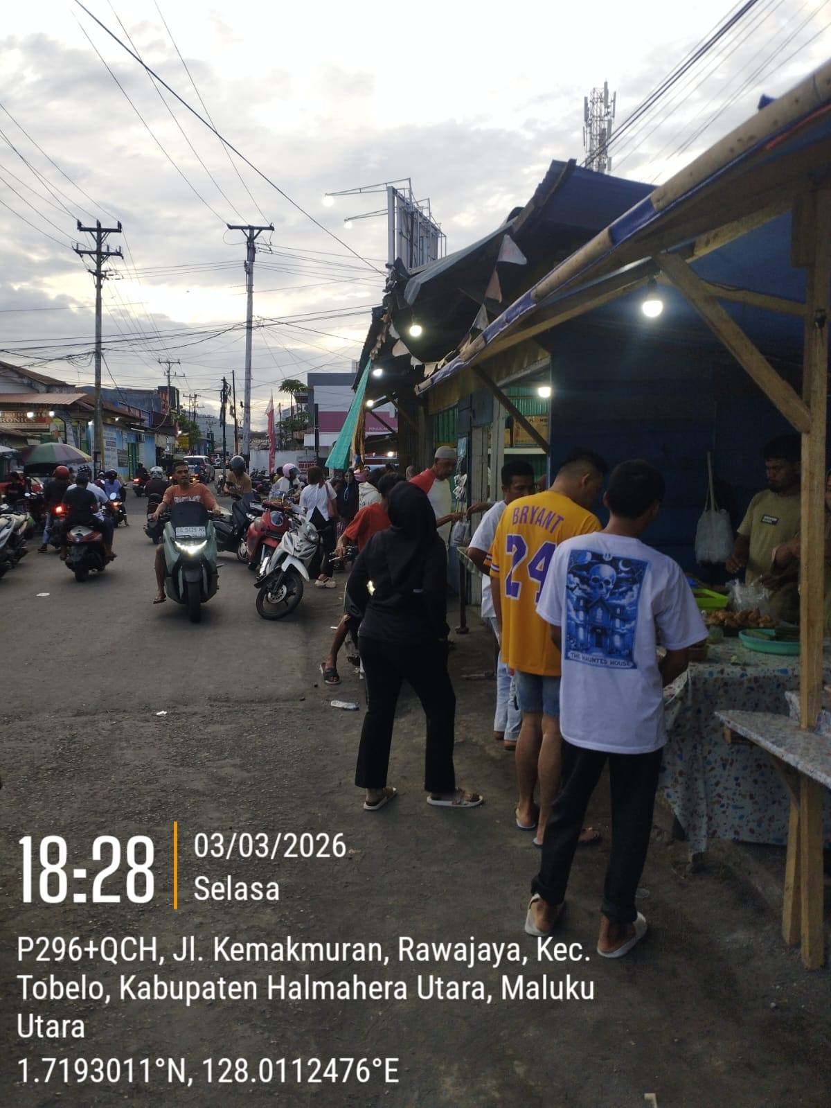 Tobelo, (Halmahera Utara ) Lintasantikorupsiindonesia.com–  Aktivitas masyarakat menjelang waktu berbuka puasa di Kota Tobelo, Kabupaten Halmahera Utara, terpantau meningkat signifikan pada Selasa (03/03/2026). Sejak pukul 15.00 WIT hingga menjelang azan magrib sekitar pukul 18.00 WIT, sejumlah titik penjualan takjil di pusat kota dan kawasan permukiman dipadati warga.