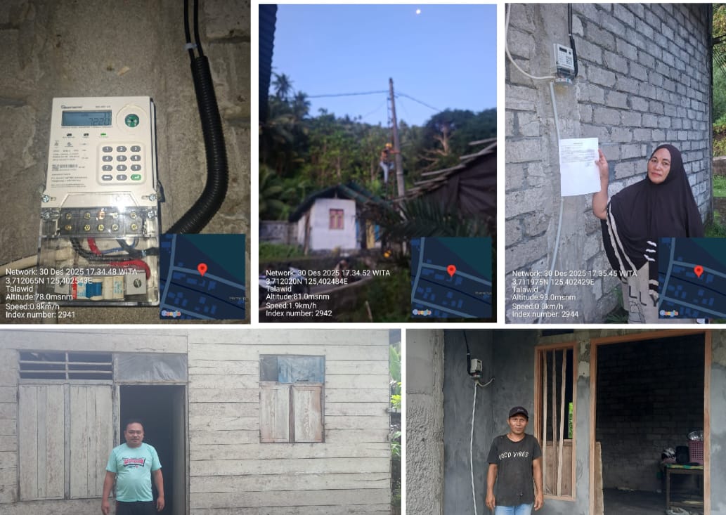 Sangihe, Lintasantikorupsiindonesia.com – Sebanyak 11 Kepala Keluarga (KK) di Kampung Talawid, Kecamatan Kendahe, Kabupaten Kepulauan Sangihe, menerima Bantuan Pasang Baru Listrik (BPBL) dengan daya 900 VA dari Kementerian Energi dan Sumber Daya Mineral (ESDM). Pemasangan listrik tersebut dilaksanakan langsung oleh petugas PLN pada Selasa, 30 Desember 2025.