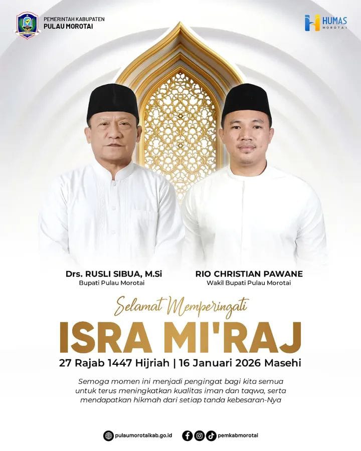 “Semoga peringatan Isra’ Mi’raj Nabi Muhammad SAW ini membawa keberkahan bagi seluruh masyarakat Pulau Morotai dan menjadi motivasi bersama dalam membangun daerah yang religius, berkarakter, dan berkeadaban,” demikian pesan Pemerintah Kabupaten Pulau Morotai.