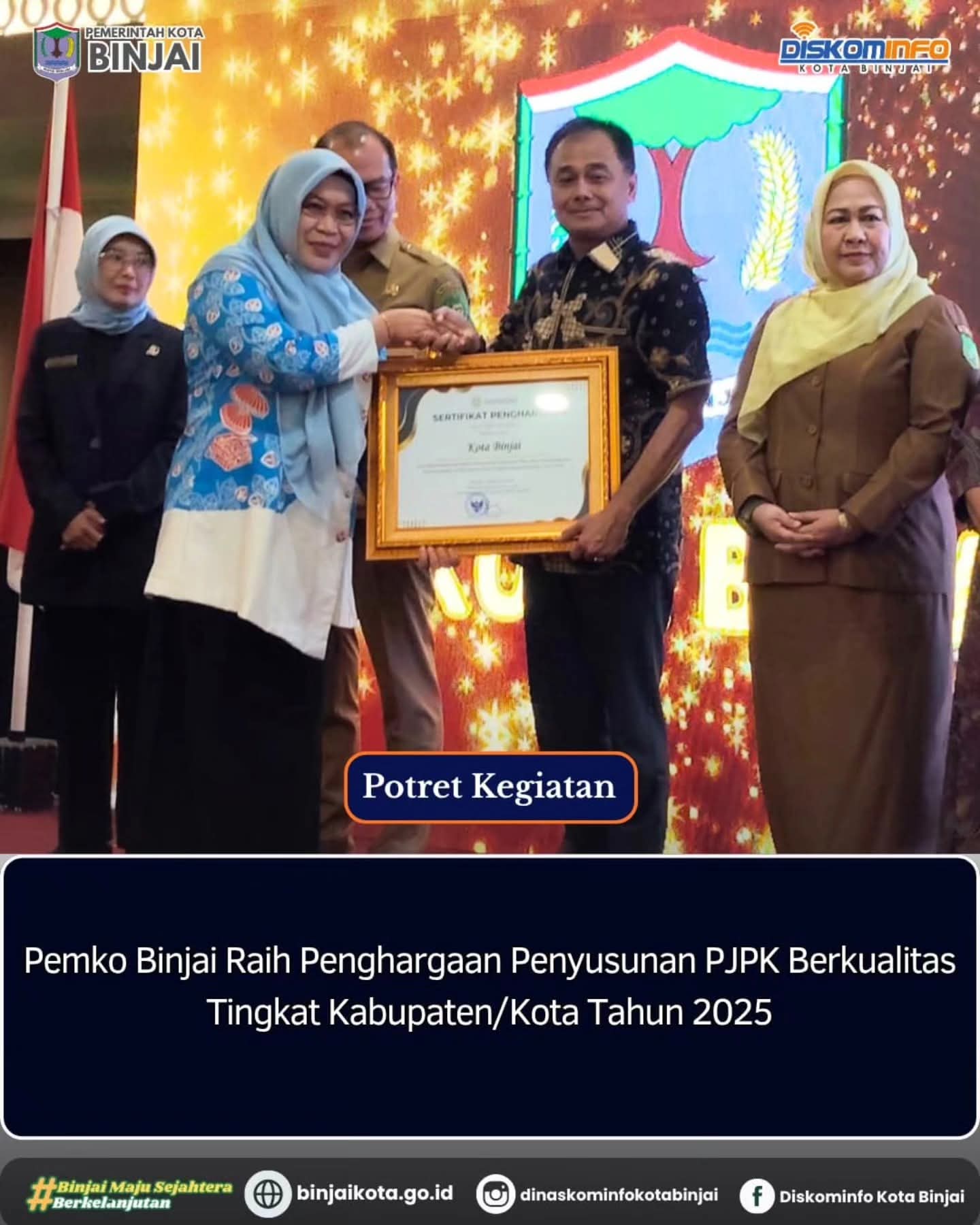 Binjai, lintasantikorupsiindonesia.com – Pemerintah Kota Binjai menerima apresiasi dari Menteri Kependudukan dan Pembangunan Keluarga/BKKBN atas keberhasilan dalam penyusunan Dokumen Peta Jalan Pembangunan Kependudukan (PJPK) berkualitas tingkat kabupaten/kota tahun 2025.