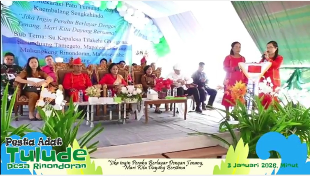 Hukum Tua Desa Rinondoran, Daud Tamahiwu, SE, dalam kesempatan tersebut menyampaikan bahwa Pesta Adat Tulude menjadi sarana penting untuk menanamkan nilai-nilai kebersamaan, disiplin, serta tanggung jawab sosial kepada generasi muda.