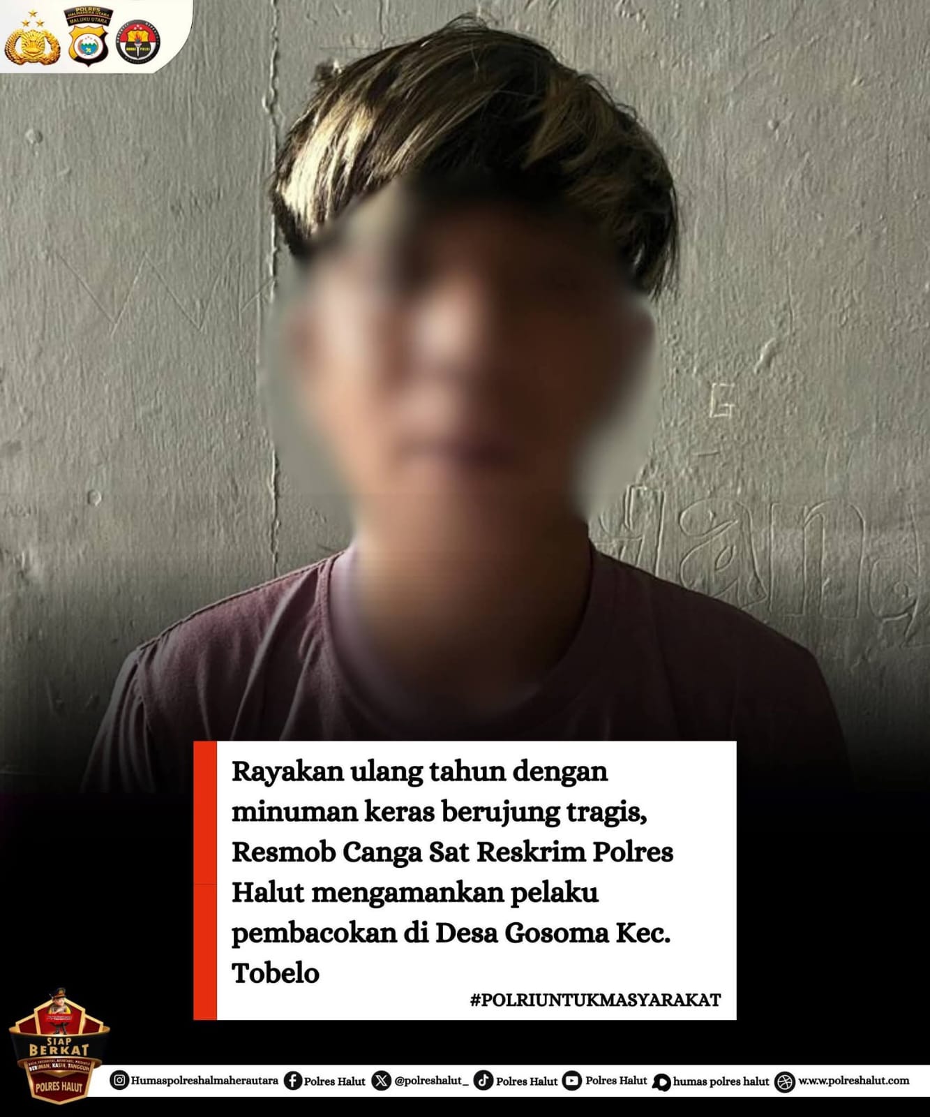HALMAHERA UTARA, LINTASANTIKORUPSIINDONESIA.COM — Perayaan ulang tahun yang disertai konsumsi minuman keras berujung tragis. Tim Resmob Canga Satuan Reserse Kriminal (Satreskrim) Polres Halmahera Utara mengamankan seorang pemuda berinisial FR (21) atas dugaan tindak pidana pembacokan yang mengakibatkan dua orang korban luka, di Desa Gosoma, Kecamatan Tobelo, Jumat (6/2/2026) dini hari.