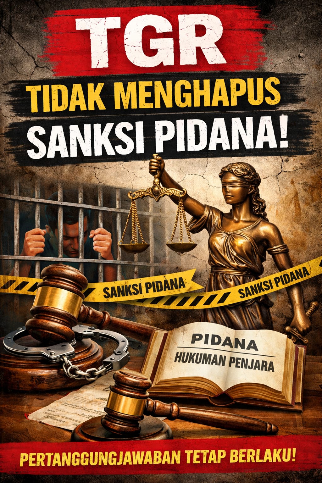Dengan demikian, pernyataan yang menyebut bahwa perkara telah selesai karena telah dilakukan TGR merupakan penyederhanaan yang keliru dan berpotensi menyesatkan publik. TGR tidak menutup kemungkinan penegakan hukum pidana, dan pengembalian kerugian negara bukanlah bentuk kekebalan hukum.