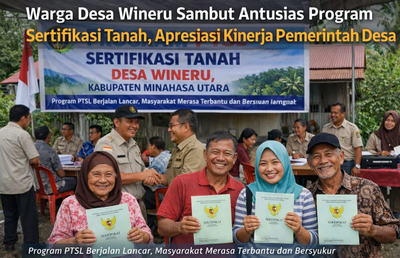 Minahasa Utara, lintasantikorupsiindonesia.com – Pelaksanaan program sertifikasi tanah melalui skema Pendaftaran Tanah Sistematis Lengkap (PTSL) di Desa Wineru tidak hanya mendapat apresiasi atas manfaatnya bagi masyarakat, tetapi juga menuai penghargaan khusus kepada Pemerintah Desa Wineru yang dinilai proaktif dalam mengawal proses tersebut.Kamis (05/03/2026)